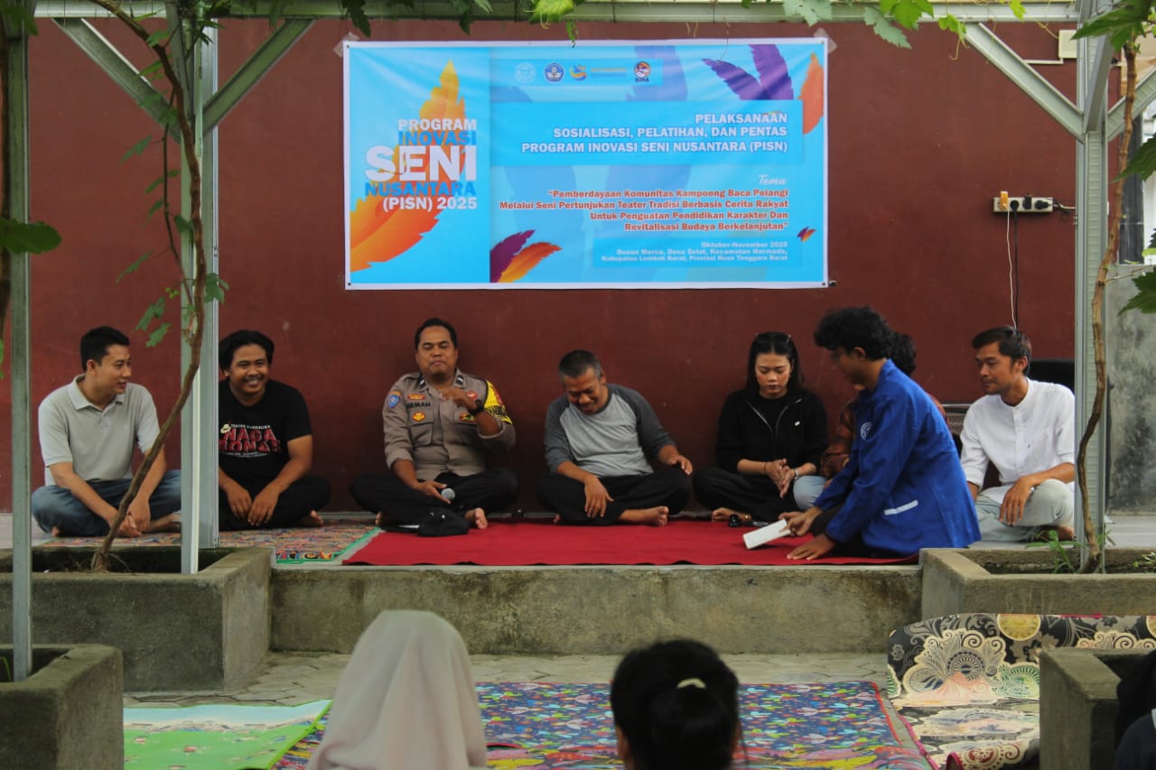 KATANYA – Tim Program Inovasi Seni Nusantara (PISN) Universitas Bumigora Mataram menggelar rangkaian kegiatan seni yang berpuncak pada pertunjukan teater tradisi dan dramatari berbasis cerita rakyat Lombok. Program yang berlangsung sejak Oktober 2025 ini menggandeng Kampoeng Baca Pelangi (KBP) di Dusun Merce, Desa Selat, Kabupaten Lombok Barat, dengan fokus utama pada penguatan pendidikan karakter dan revitalisasi budaya lokal.
